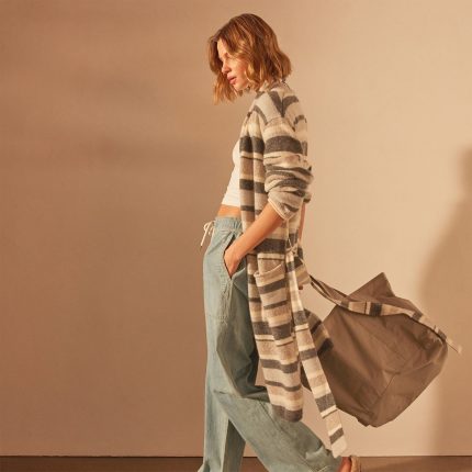 Lightweight Cashmere Striped Cardigan – Thunder/Mist/Hazel/Ivory