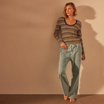 Stretch Linen Ribbed Cardigan – Bleached Blue