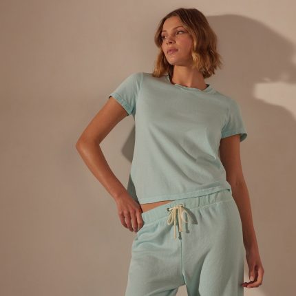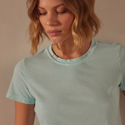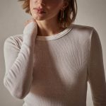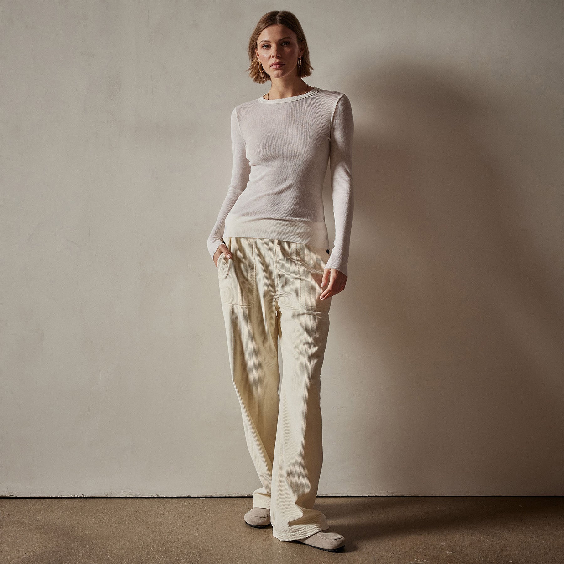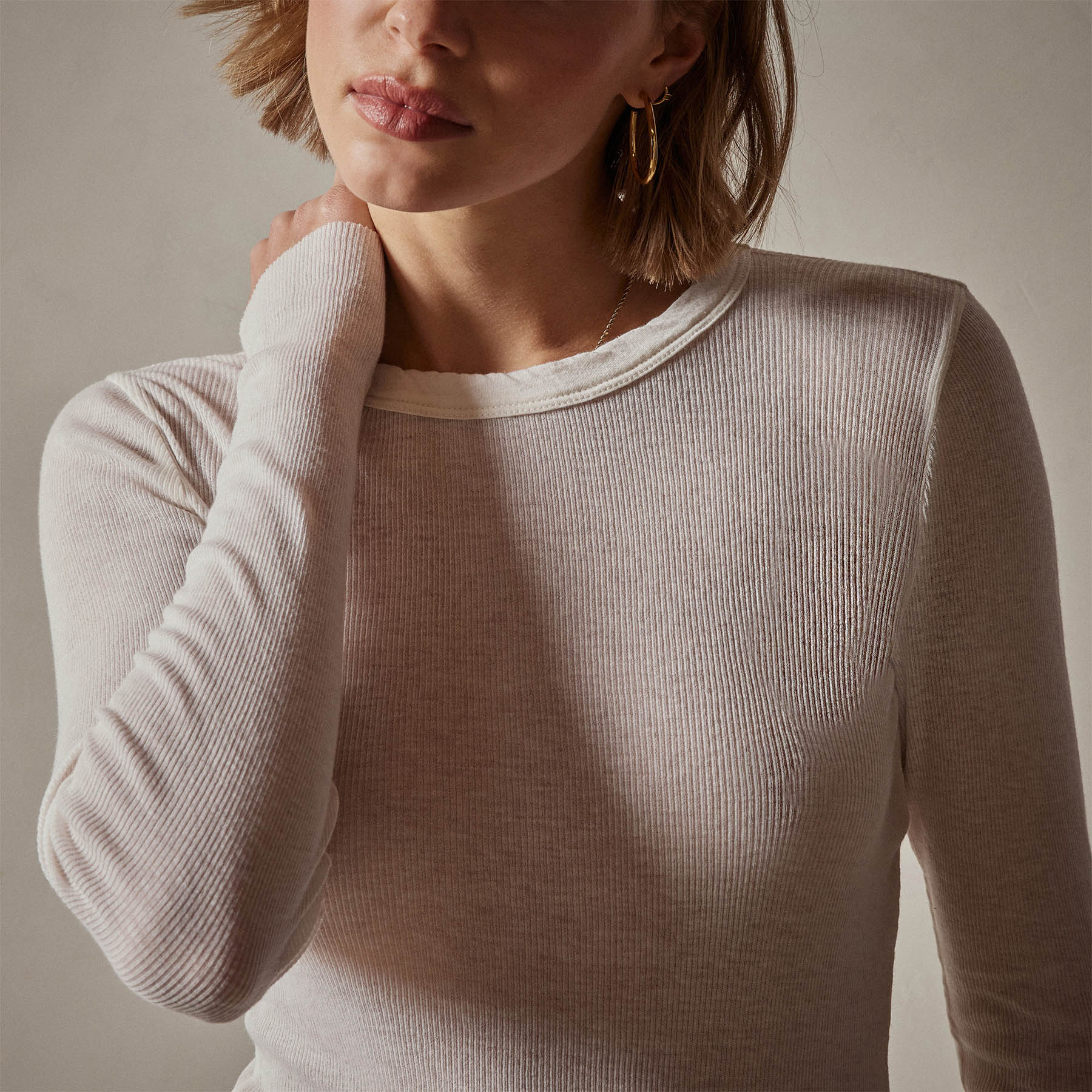 Home t-shirts Cotton Cashmere Blend Ribbed Long Sleeve Crew – Ivory
