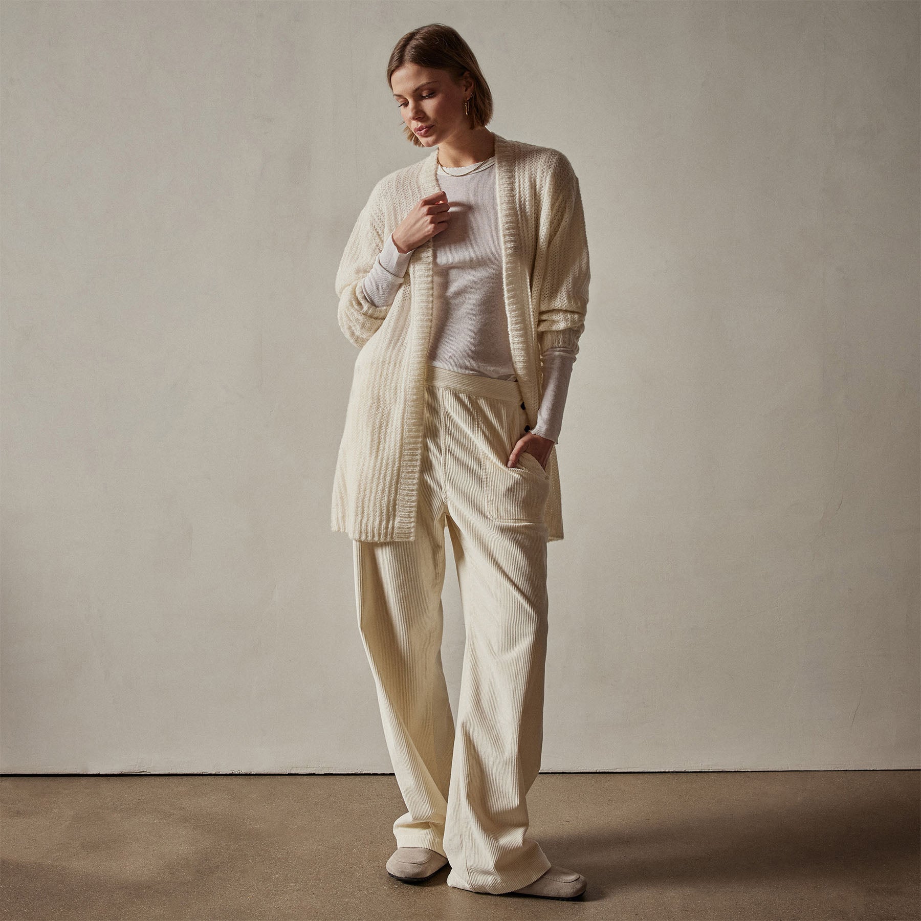 Cotton Cashmere Blend Ribbed Long Sleeve Crew – Ivory