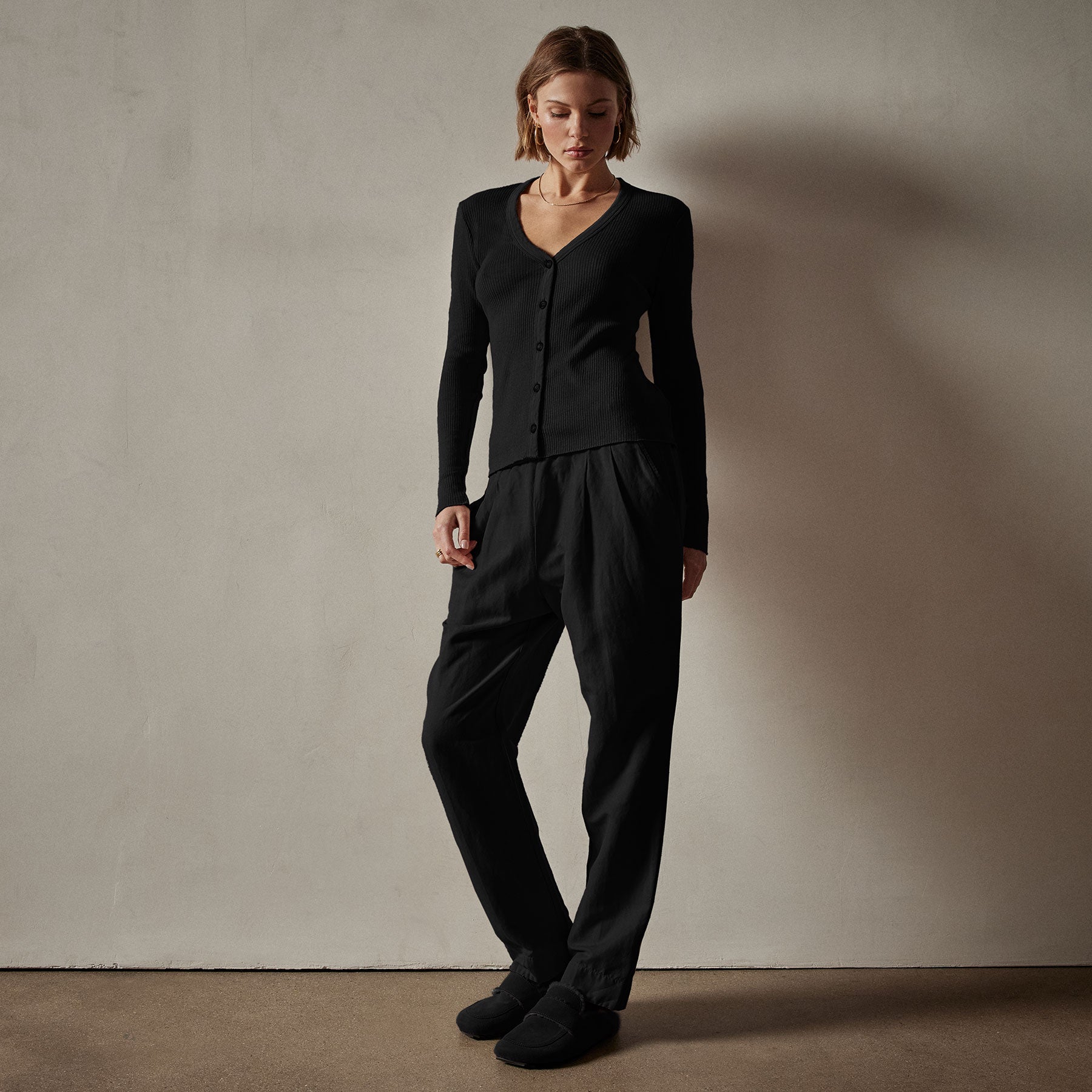 Home sweaters-cashmere Cotton Cashmere Rib Cardigan – Black