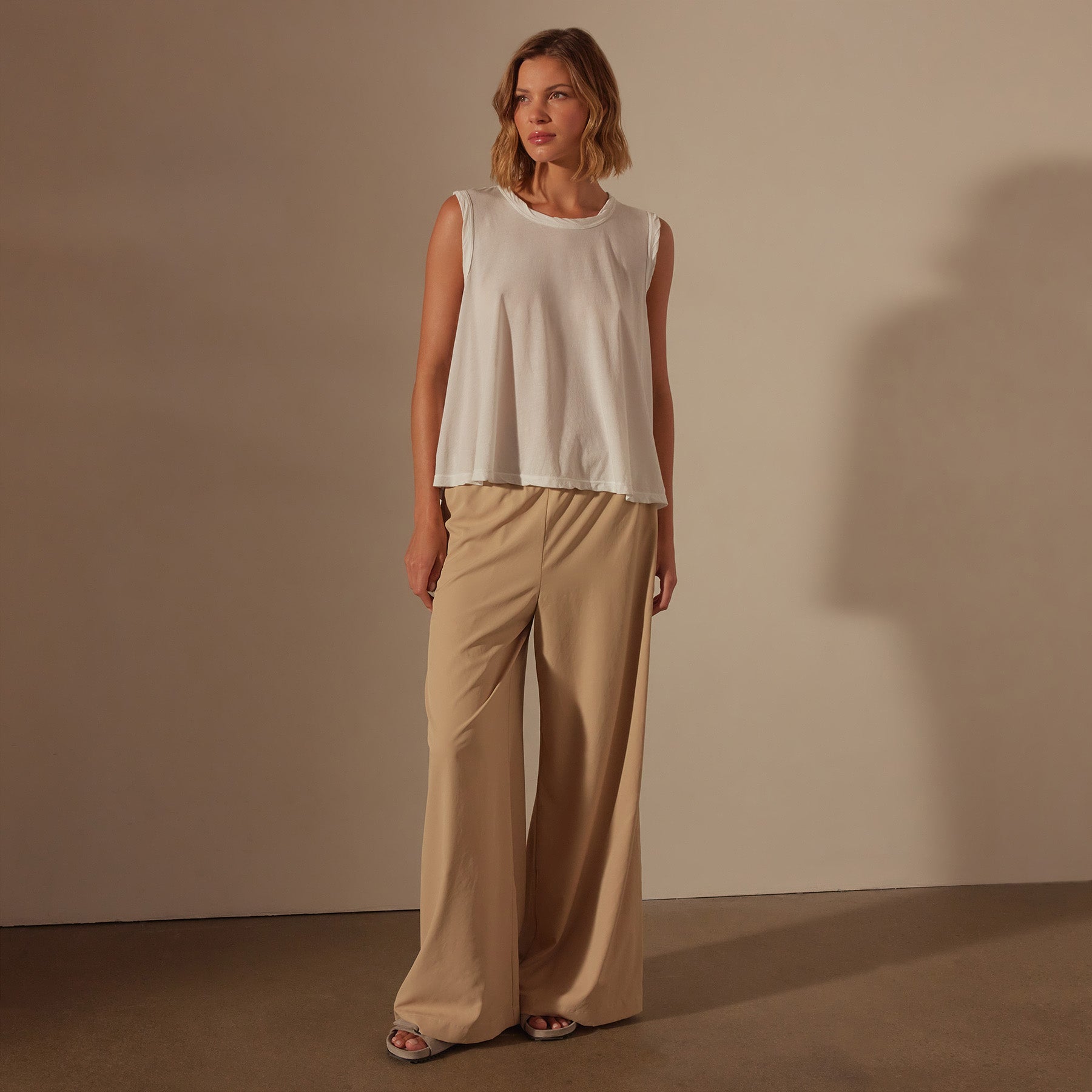 Our Fine Gauge A Line Shell Top is made in luxurious, soft and drapey Japanese cotton jersey. Style details include high low hem, self binding hems at neck and armhole, and a crew neckline. Garment dyed. Relaxed fit.