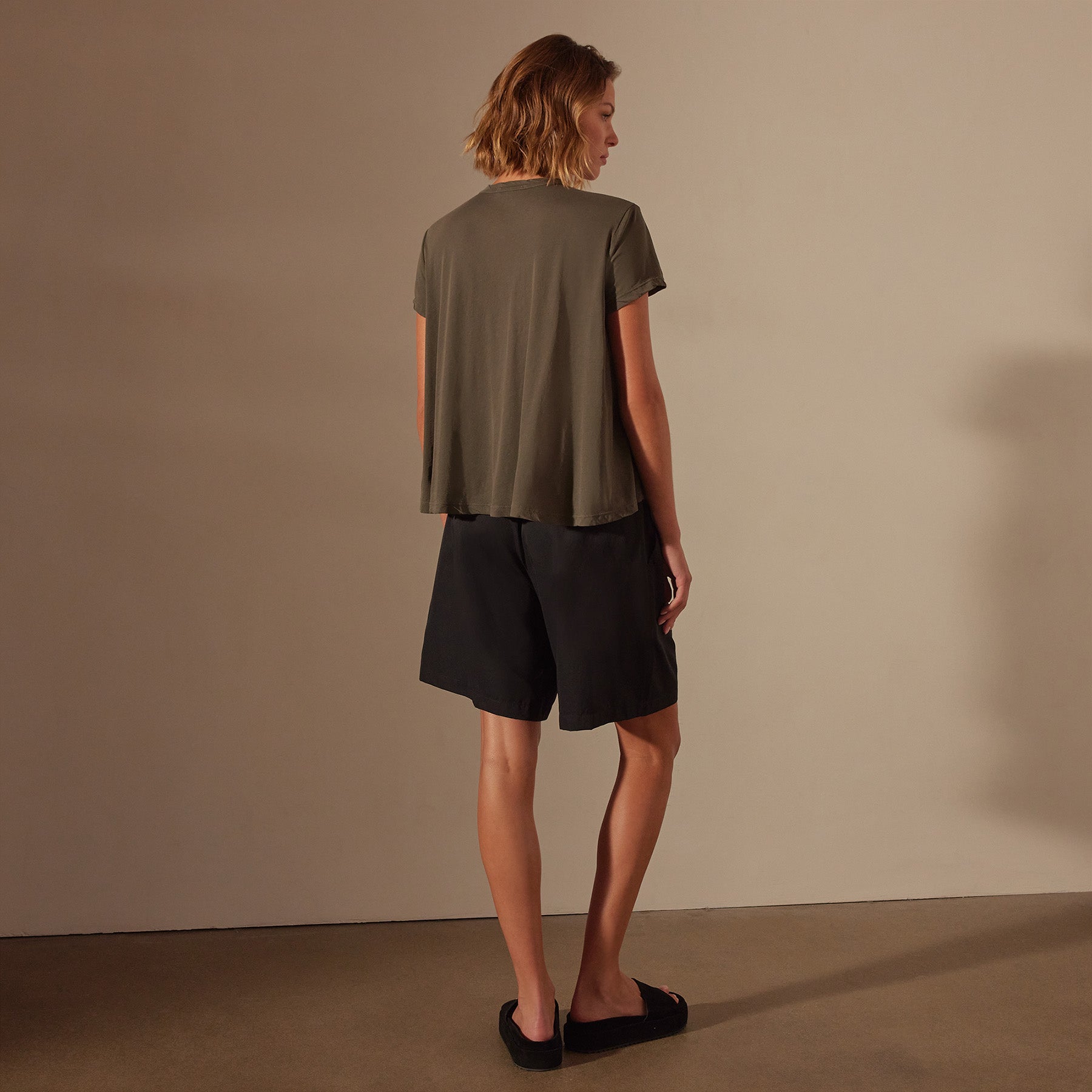 Our Fine Gauge A Line Tee is made in luxurious, soft and drapey Japanese cotton jersey. Style details include crew neckline, short sleeves. Garment dyed. Relaxed fit.
