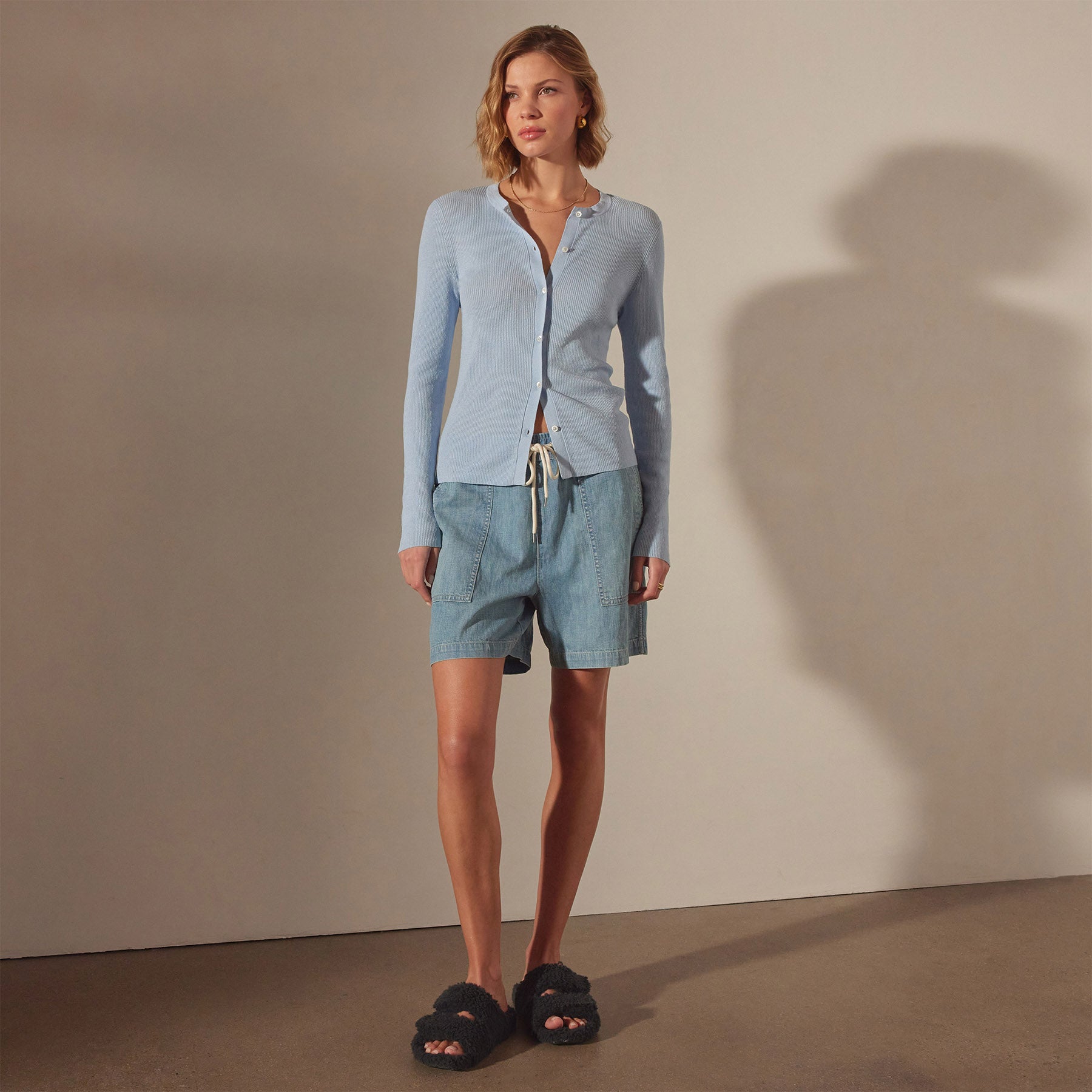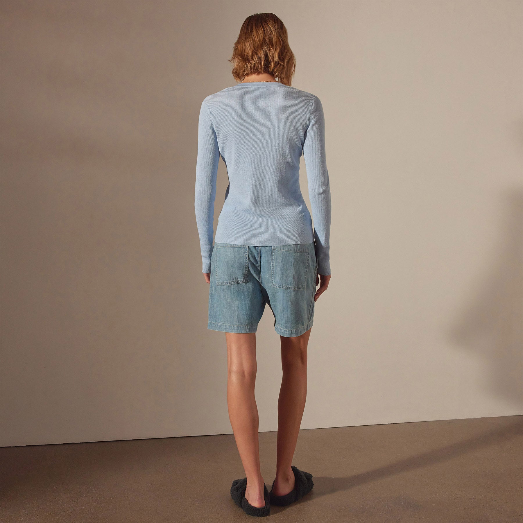 Stretch Linen Ribbed Cardigan – Bleached Blue